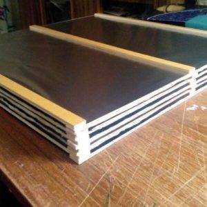 - Осуществите сборку конструкции, для этого пользуйтесь герметиком. Для эффективной работы теплообменника, его пластины должны иметь площадь минимум в 3 кв.м, при этом зазор между ними нужно оставлять на меньше 4 мм. Материалом для рамок между пластинами служит техническая пробка. Ее полоски зафиксируйте полиуретановым клеем.