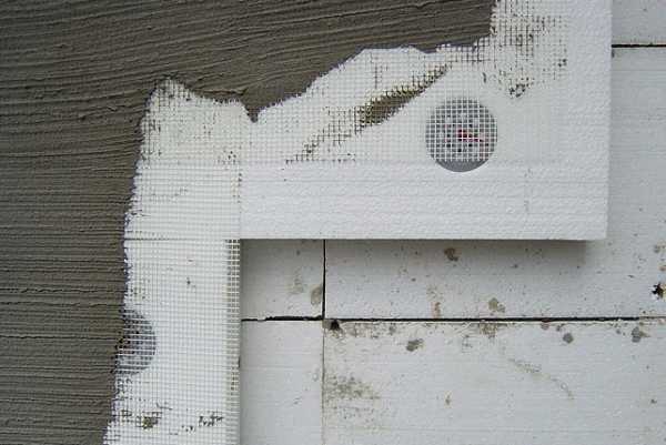 Наиболее простой вариант – штукатурка. Она наносится непосредственно на поверхность пенопласта или на предварительно подготовленную (обработанную игольчатым валиком) поверхность ЭППС. В некоторых случаях для улучшения прочности сцепления отделки и основания используется стекловолоконная армирующая сетка.