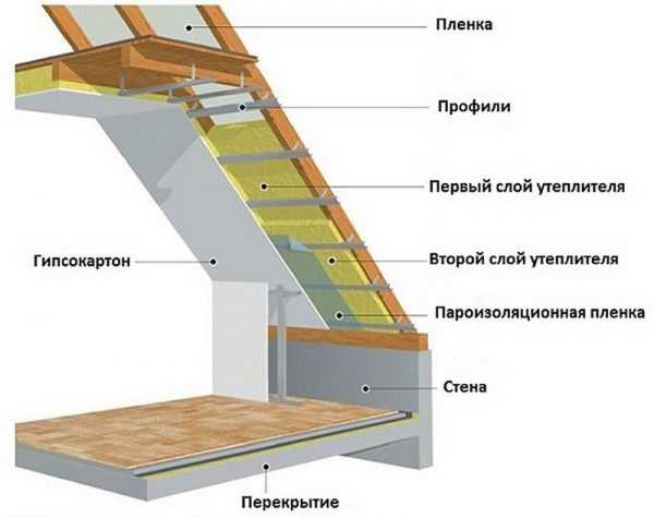 Схема утепления кровли мансарды напоминает пирог, который состоит из таких слоев: