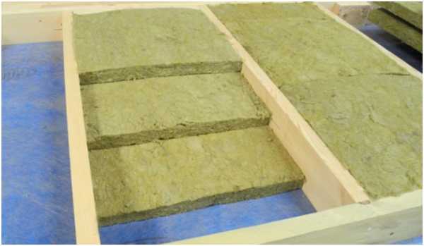 - В получившиеся «корыта» укладывается утеплитель, лучше воспользоваться базальтовой ватой. Какой-либо другой современный материал тоже подойдет.