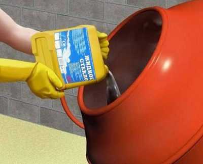 Инструкция по использованию жидкого стекла не предусматривает применения бетономешалки. При слишком высокой концентрации этого материала смесь способна застыть еще до окончания перемешивания.