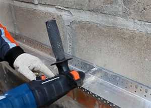 Первоначально крепят дюбелями оцинкованный карниз. Он располагается внизу стены. Это очень важный этап, который позволит всем слоям материала лечь ровно. Его ещё можно назвать монтажом цокольных планок. А ещё это верная защита от мышей и прочих грызунов.